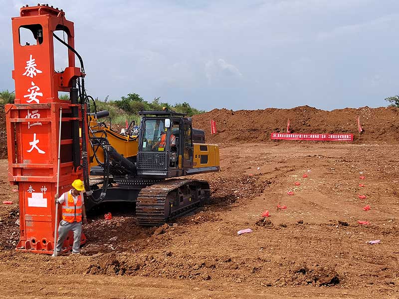 HC150千焦高速液压夯实机在江苏南京万科城楼盘房建基础地基夯实液压夯实机型号:HC150锤体重量:10吨冲击能量:150千焦工作高度:5.7米夯板直径:1.25米工作质量:1...